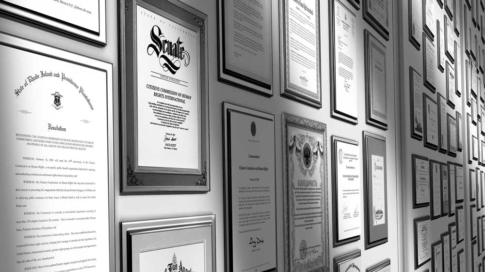 - 與義大利政府官員及國會議員合作,CCHR義大利分會針對國內精神科病患收容院中類似集中營的情形做了調查。 收容院的職員將政府補助納入自已口袋,卻讓收容病患衣不蔽體並且挨餓。對於這項證據,政府的回應是發佈了一項決議案,命令97所收容院關門。這些受虐待和忽視的收容人被轉到仁慈的家庭裡,許多人是三十年來頭一遭接受讀寫和自我照顧的教導。因為在人道主義上所做的努力,CCHR獲頒市長獎章。
