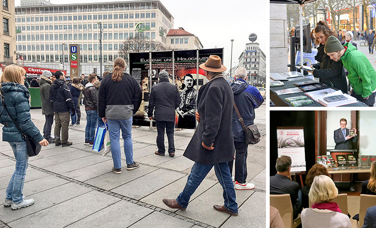 在德國,CCHR分會在柏林、法蘭克福、漢堡、斯圖加特和慕尼黑舉辦活動,他們為大屠殺的受難者守夜,並在繁忙的街頭展示《希特勒背後的黑手》,以及《優生學與大屠殺》。 所有活動揭露這些大屠殺這項致命政策和行動背後的真正來源,所以這種罪行將永遠不再發生。
