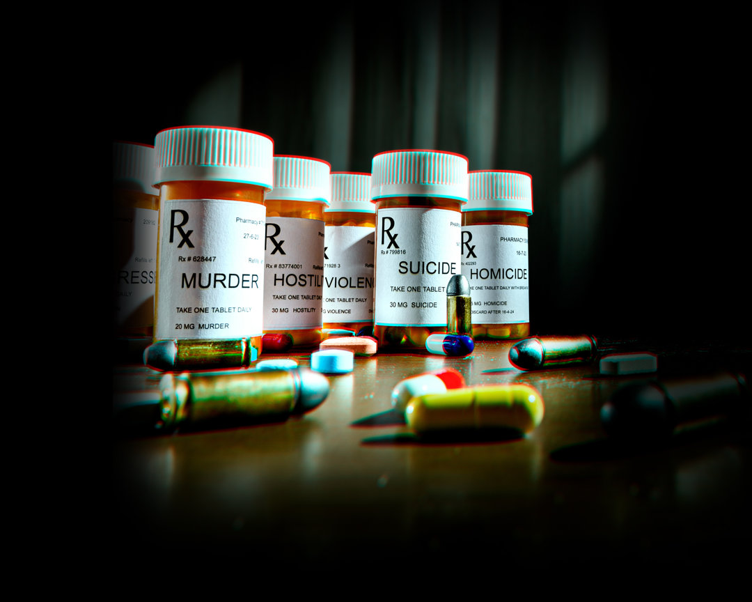 服用精神科藥物與暴力行為之間的關連不容否認。雖然開立精神科藥物處方箋的比例持續攀升,但每個上課日都會發生一起校園槍擊事件;每天平均發生兩起大規模槍擊事件;每45秒鐘就有一個人了結自己的生命。